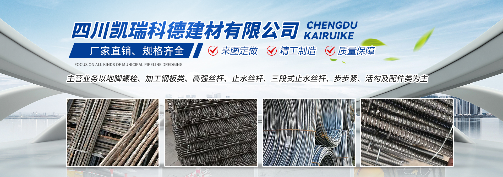 四川凱瑞科德建材有限公司主要經營鋼筋直螺紋接頭,扣件,頂托,試壓模,U型扣,鋼筋保護層墊塊,高強絲桿,測繪儀器等各種建筑器材。該產品經嚴格檢驗后出廠,質量長期穩定,經國家技術監督局多次抽驗,均符合G...